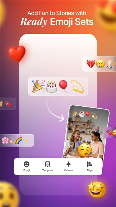 • Unleash your creative potential and make every post, message, and story unforgettable with the iOS Emojis For Story app!