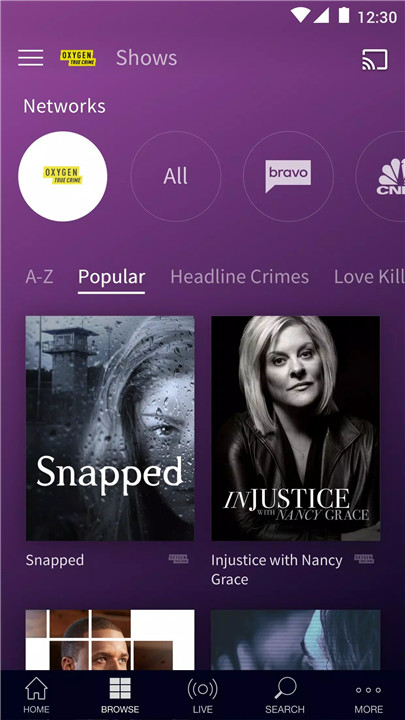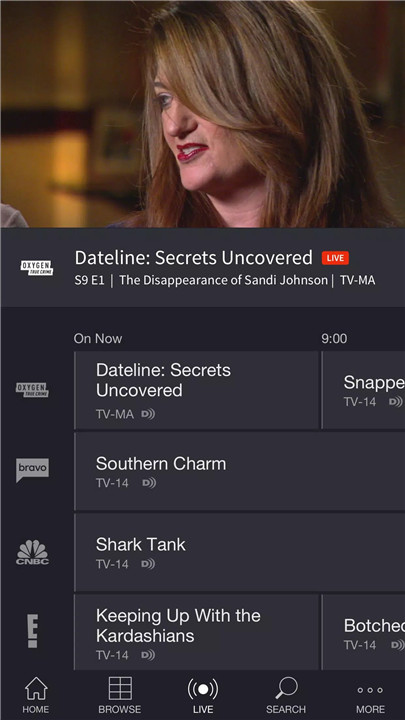 Sign in with your cable, satellite, or digital TV provider to unlock the full catalog of Oxygen’s video-on-demand and live content. Supported providers include: