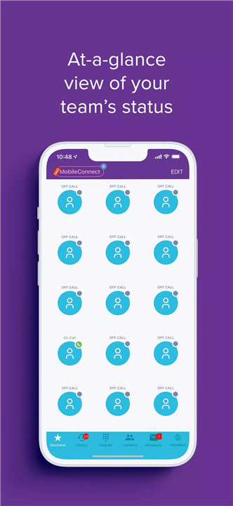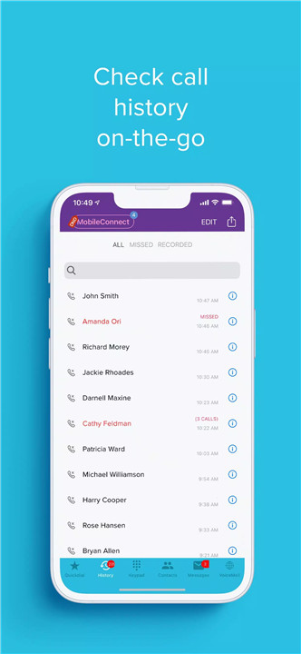 With MobileConnect allows you to effortlessly manage contacts, voicemail, and call history directly from your Android device. The app provides a centralized hub for communication tasks, empowering users with the tools to stay organized and responsive in dynamic work environments.