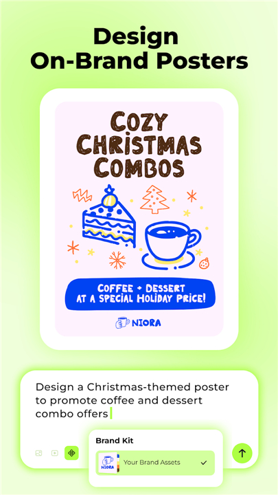 • Quickly create seasonal campaigns, promotional posters, menus, and digital ads.