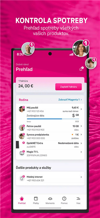 Yes! You can add several mobile numbers, Magio Internet/TV, and landline services. It’s perfect for managing all household or family accounts in one place.