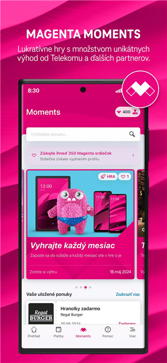 Magenta Moments is a feature inside the app that offers exclusive promotions, games, and benefits from Telekom and selected partners—just for Telekom users.
