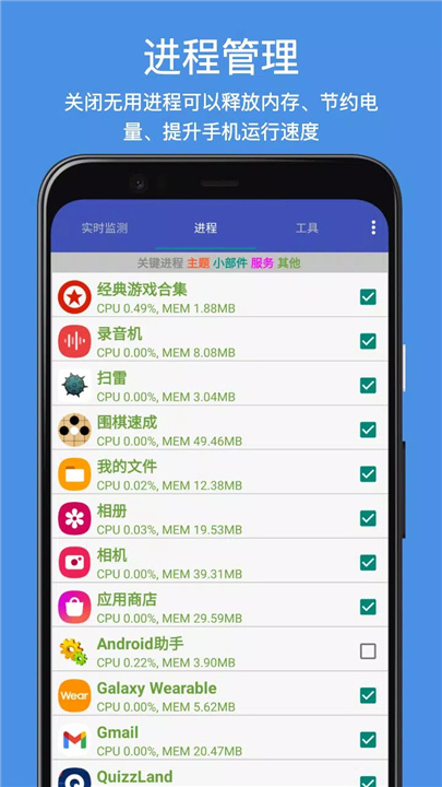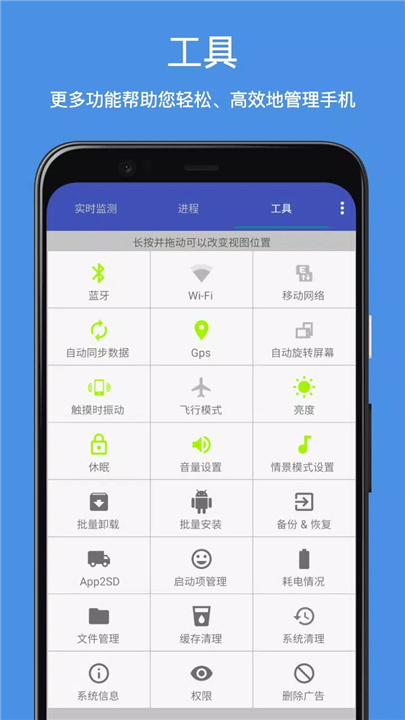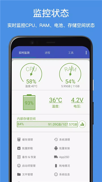 首先,你可以通过它对手机的运行状态进行全面掌控,包括查看内存占用情况以及程序的CPU使用率;其次,你还可以轻松管理所有正在运行的进程,清除缓存垃圾,甚至深度清理整个系统,如浏览器历史记录、剪贴板等。