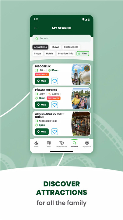 Planning ahead is easy with the Parc Astérix app. You can browse through the park's wide array of attractions and shows to discover what excites you most.