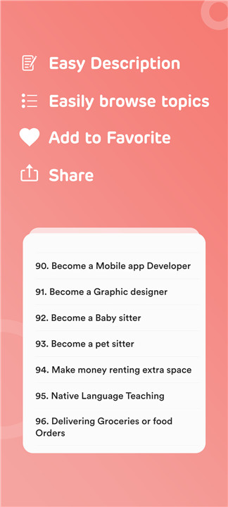 A: The app gives you access to a curated set of practical home-based earning opportunities. Each idea comes with clear steps, suggestions for getting started, and tips to help match opportunities to your skills and schedule so you can begin without feeling overwhelmed.
