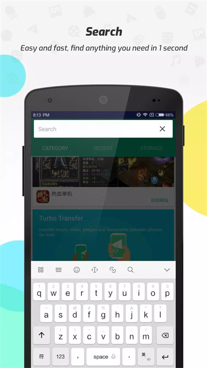 APUS文件管理器提供极速搜索引擎,您只需输入关键词即可在1秒内找到所需文件,极大提高查找效率。