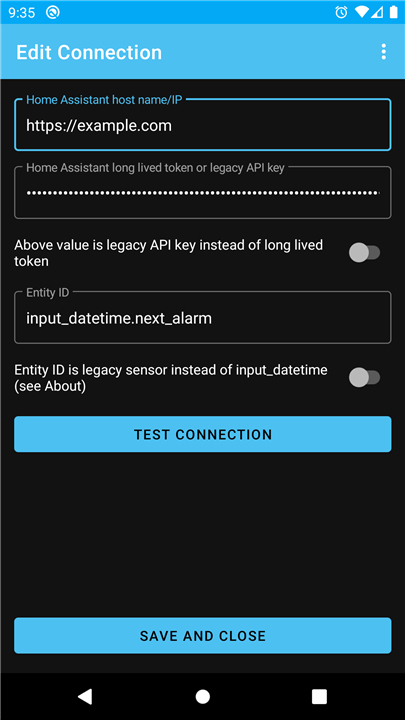 + The system updates the input_datetime.next_alarm entity or a custom entity ID specified by the user.