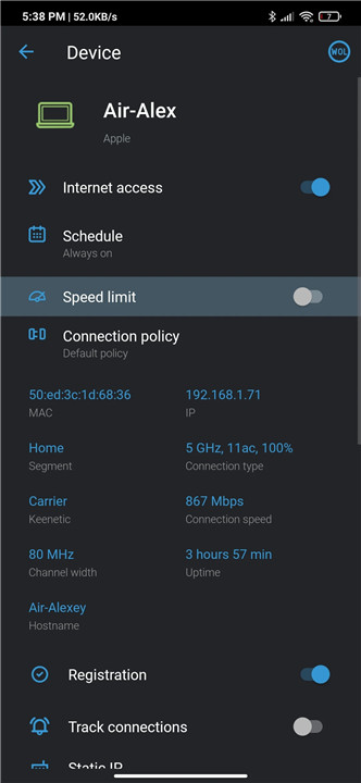 Setting up the Keenetic App takes just minutes, and it empowers you to monitor your internet connection's status and speed, manage the Guest Wi-Fi network, create weekly schedules for family members, oversee their internet usage, enforce content restrictions, and even pause or restart home internet access as needed.