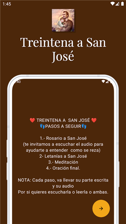 • This application serves as a dedicated companion for your thirty-day devotional to Saint Joseph, providing a structured environment where you can seek peace, mental clarity, and a deeper bond with the divinity of Christ.