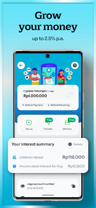 • GoPay Tabungan by Jago: Grow your savings with attractive interest rates, protected by the LPS. Activation takes only two minutes.