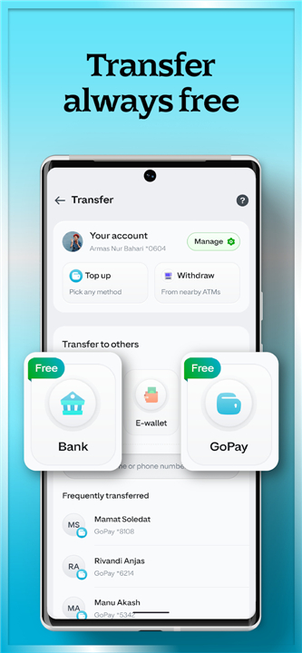 • Benefit from free top-ups and withdrawals at Alfamart and Indomaret, plus five monthly fee-free top-ups via Debit or Virtual Account.