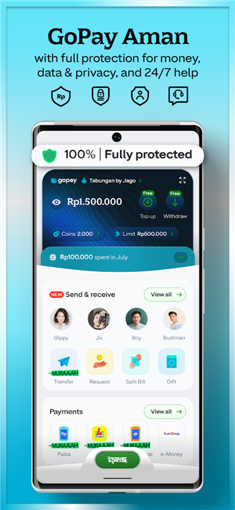 Manage your money with GoPay! Enjoy free transfers, QRIS payments, bill tracking, and savings with GoPay Tabungan. Download the latest version of GoPay: Transfer, Payment, QRIS to enjoy new features and updates immediately!