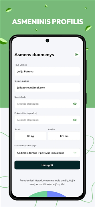 • Document weight fluctuations and body measurements over time to visualize physical transformations through detailed historical charts.