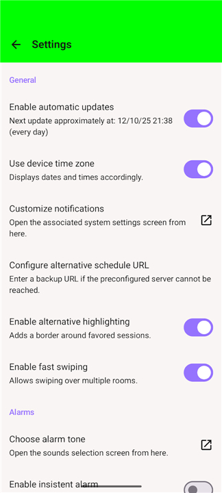 • Add settings toggles for showing schedule update dialog & for showing app on lockscreen. Thx Andreas W.