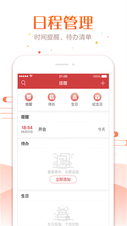- 支持设置生日提醒、会议提醒、待办事项、日程安排等,确保你不会错过重要的事情。