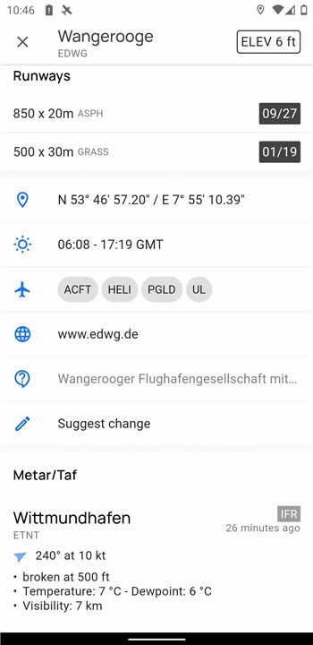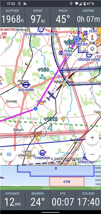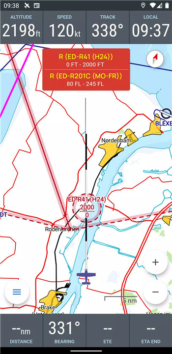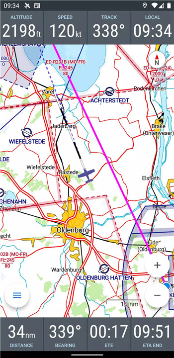 VFRnav provides real-time navigation on an ICAO-style map, allowing pilots to see their flight routes clearly. The moving map updates your current position during flight, ensuring that you’re always aware of your location.