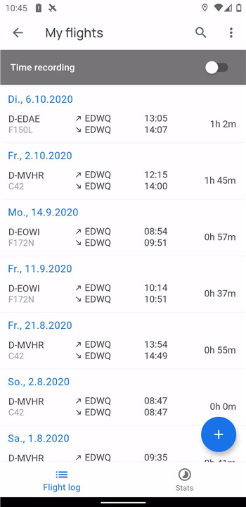 VFRnav automatically records flight details such as takeoff and landing times. You can easily export flight data as KML files for use in other applications like Google Maps.