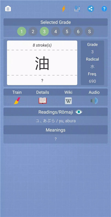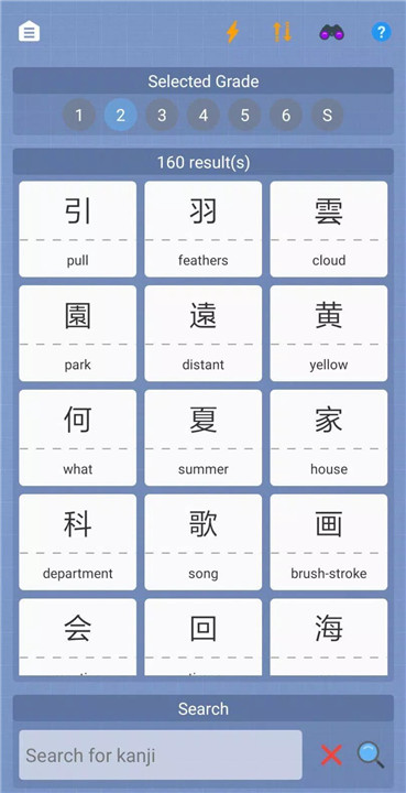 - Navigate through the Jōyō list or JLPT levels to explore kanji by grade or meaning.