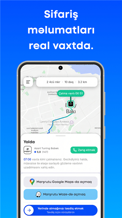 • After the chosen partner responds, users receive instant confirmation or rejection notifications and can track the real-time status of their order directly within the app, removing any uncertainty.
