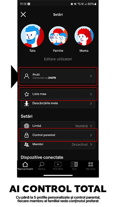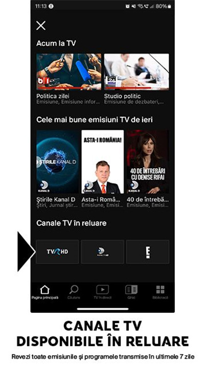 Watch your favorite Romanian and international channels live, just like traditional TV—only better. The app offers a built-in TV guide for real-time browsing and lets you stream programs directly. Prefer watching later? Choose from an extensive VOD library with popular movies, TV series, documentaries, and kids' shows ready to stream on demand.