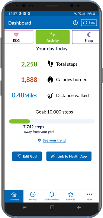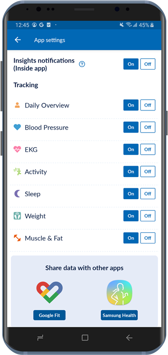 • Review historical health data for sleep, weight, EKG, and activity