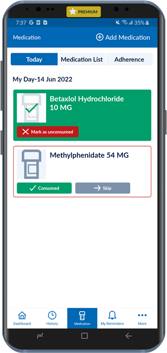 • Log and track medications so you never miss a dose