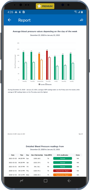 A: Premium subscribers gain deeper insight into how blood pressure, sleep, activity and weight interact to affect heart health. The subscription also includes a rewards program for consistent tracking, the ability to generate detailed PDF reports for healthcare providers and a medication log to help you stay on schedule.