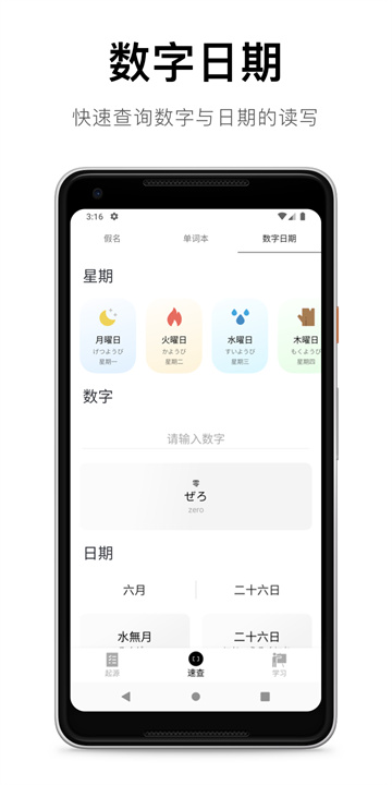 应用涵盖所有音节,包括平假名和片假名,并提供详细的发音指导。用户可以通过听、说、读、写等多种方式练习,增强记忆效果。丰富的单词库中,每个单词都配有例句和音频,帮助用户理解词义和用法。