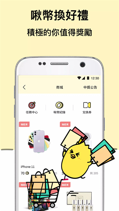 完成任务后,用户可获得啾币,并兑换多种礼物奖励自己。