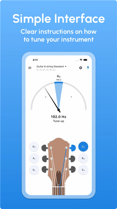 1. Tap a guitar note to hear the correctly tuned sound.