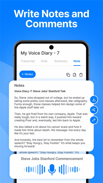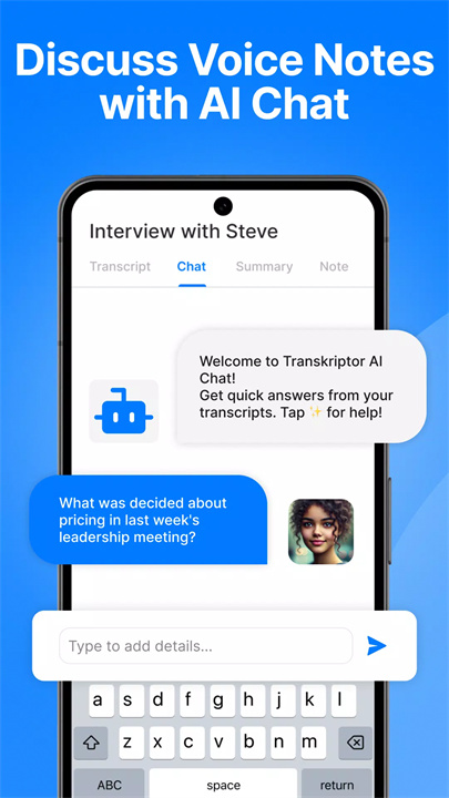 通过内建的AI助手,用户可以轻松总结语音内容、起草邮件或创建文本摘要。AI聊天功能让用户能通过互动从转录内容中提取关键信息,进一步提高效率。