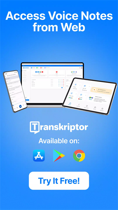 Transkriptor能自动将语音备忘录和会议内容转换为文字,支持多种常见音频格式,如MP3、WAV、M4A等,确保准确捕捉每一个细节。