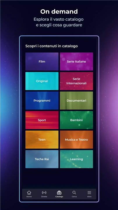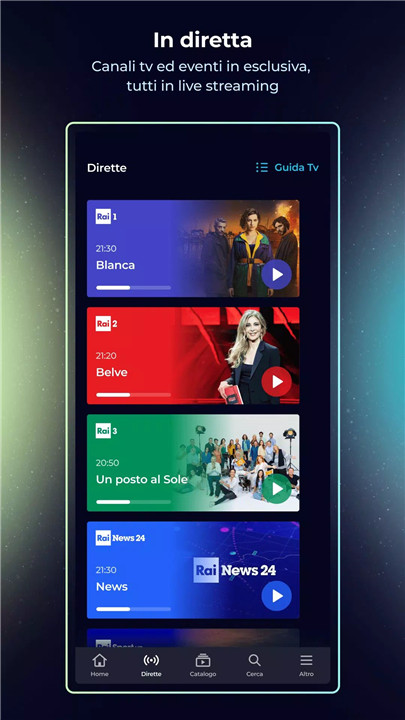 RaiPlay offers a vast range of on-demand content, including movies, TV series, documentaries, and even children’s cartoons. You can browse by genre, discover new content, and never miss your favorite programs with the TV Guide/Replay service.