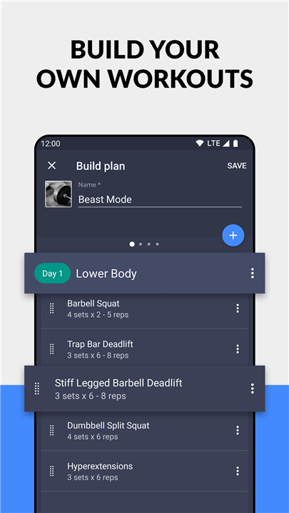 • Built-In Programs – Follow proven routines like StrongLifts 5x5, PHUL, and PPL splits or customize your own.