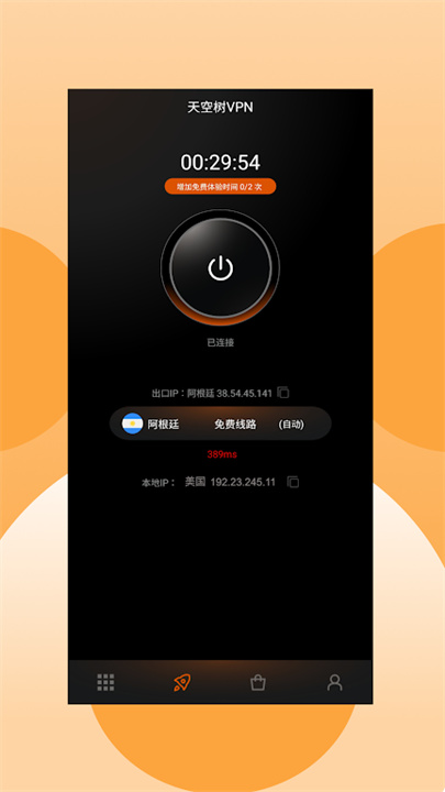 “复杂的操作?那不适合我。”如果你也是这样的人,天空树VPN绝对让你眼前一亮。它的界面设计简洁直观,启动方式更是傻瓜式。只需轻轻一点,VPN立即连接,其他操作无需任何脑力负担,简单又高效。