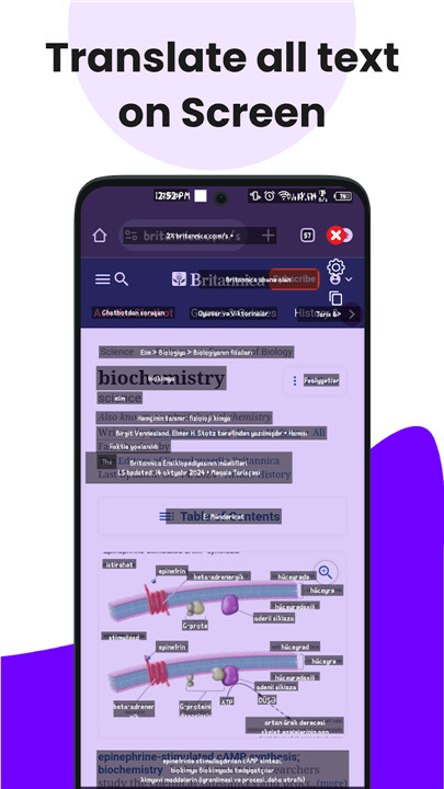 Screen Translator effortlessly identifies any text displayed on your screen and translates it instantly into your preferred language. With a simple tap on the screen translator feature, the Instant Translate on Screen provides you with top-notch capabilities for translating text directly on your device. This functionality works seamlessly across all types of applications, including social media, gaming, utilities, lifestyle, news, and reading apps. Whether it's social media updates, chat messages, or various document translations, our screen translator allows you to convert content into any language with remarkable ease.