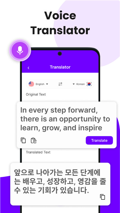 Additionally, our app includes features for photo and voice translation. With the Photo & Image translator, you can easily convert images into any language, while the voice translator allows you to translate your spoken words or audio into your desired language.