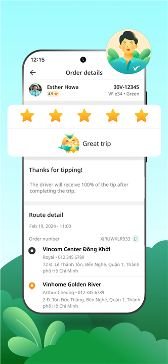 • Flexible Payments: E-wallets, bank cards, corporate cards, Xanh e-card, or cash.