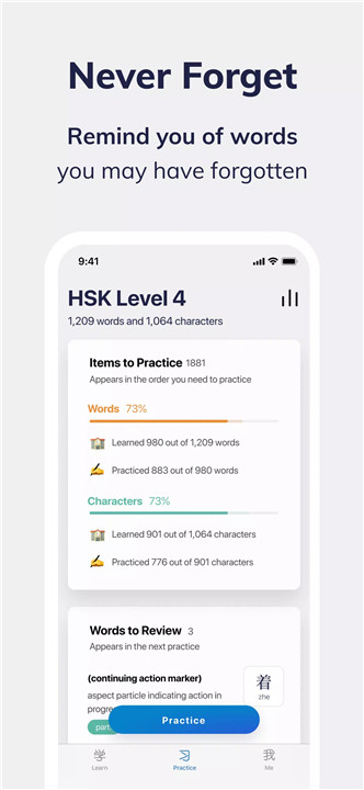 - Comprehensive Learning: Access a vast library of Chinese vocabulary covering HSK 1-6 levels. Learn new words and characters every day, ensuring steady progress in your language journey.