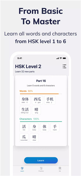 - Structured Learning Paths: Dive into the HSK course curriculum, meticulously organized to help you master each level's vocabulary. From HSK 1 to HSK 6, all the essential words and characters are at your fingertips.