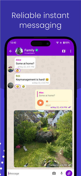 - Chats are protected with end-to-end encryption, safeguarding against network and server threats.