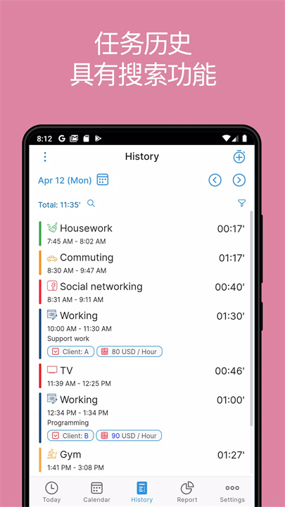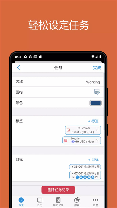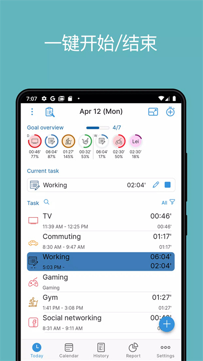 任务一键开始/停止:只需轻轻一点,时间记录说走就走,简单到爆!