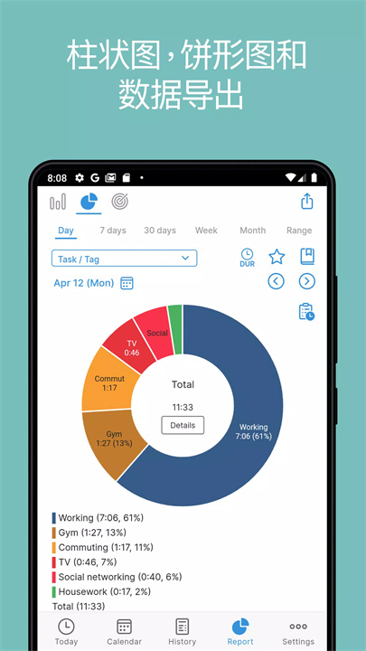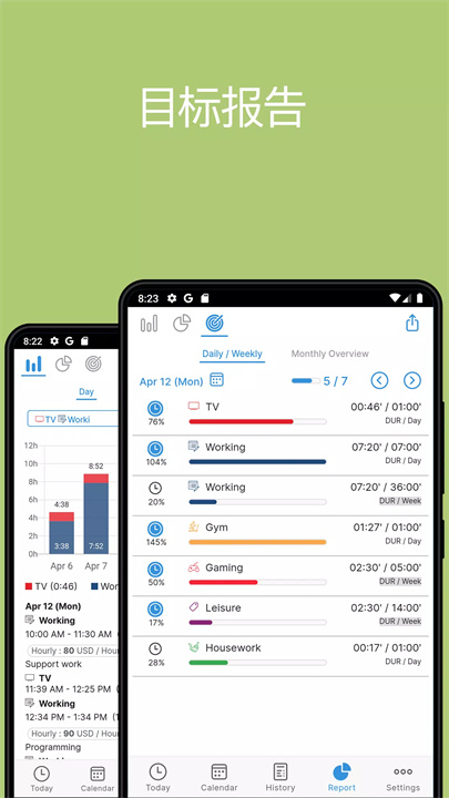数据会说话:饼图、条形图,还有炫酷的目标报告,时间花哪儿一目了然。