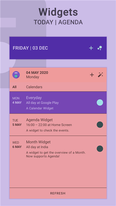 + This widget provides a clear and concise overview of your upcoming events, allowing you to quickly scan your schedule for the day, week, or even further into the future.
