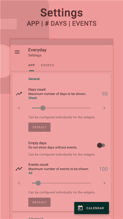 A: You can tailor nearly every aspect of Everyday’s widgets. From changing which days are visible and the starting day of the week, to adjusting how multi-day events are displayed, you have the ability to fine-tune your experience. You can even control the number of events shown and decide whether to hide days without any appointments.
