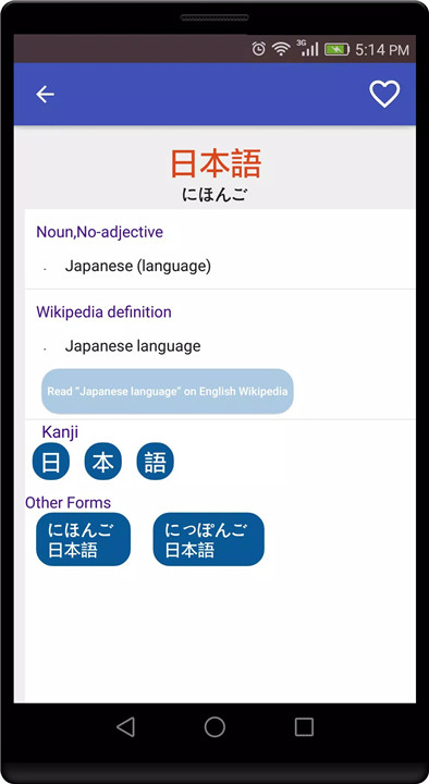 With a design resembling Jisho.org and additional features like word favoriting and search history tracking, the app provides you with a handy Jisho experience on the go, anytime, anywhere!