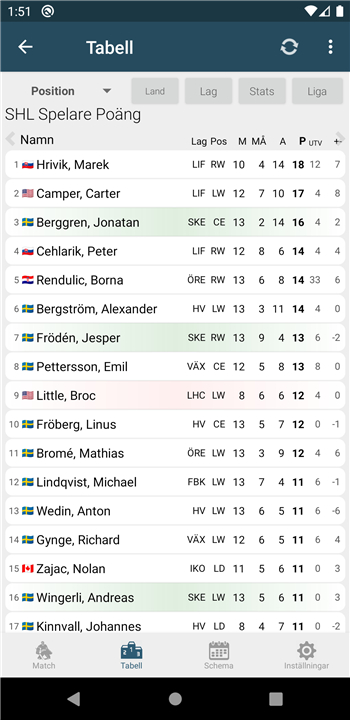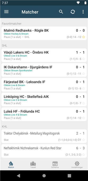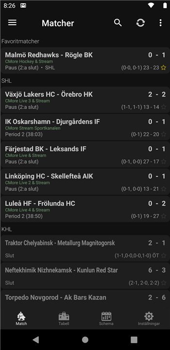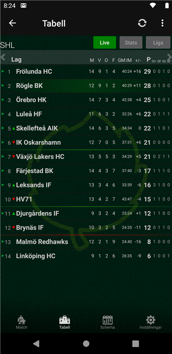 Livescore for SHL, HockeyAllsvenskan, HockeyEttan, Hockey-VM,NHL, football, etc Download the latest version of Sportstats to enjoy new features and updates immediately!