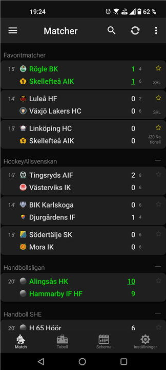 A: You can track a wide range of sports including ice hockey, football (soccer), handball, bandy, and floorball. Each sport features comprehensive league coverage, live match updates, and in-depth stats.