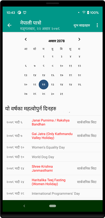 - Stay updated with important dates, events, and holidays as per the Nepali calendar.