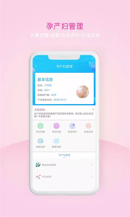 通过收集和利用人口信息与电子健康档案,提供个性化的健康管理方案,涵盖婚前、孕前、孕期、产后、新生儿及儿童保健等多个专业模块。